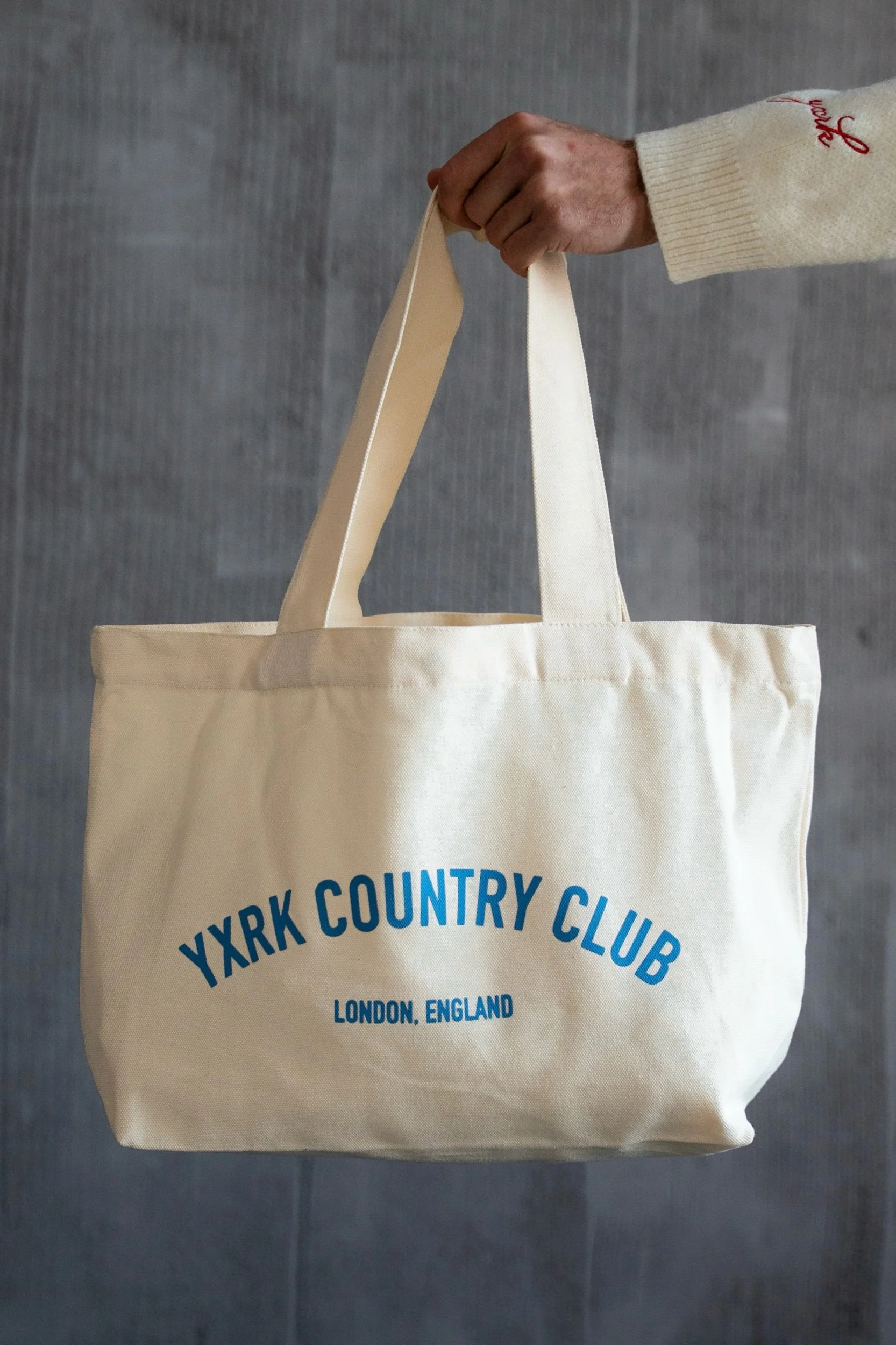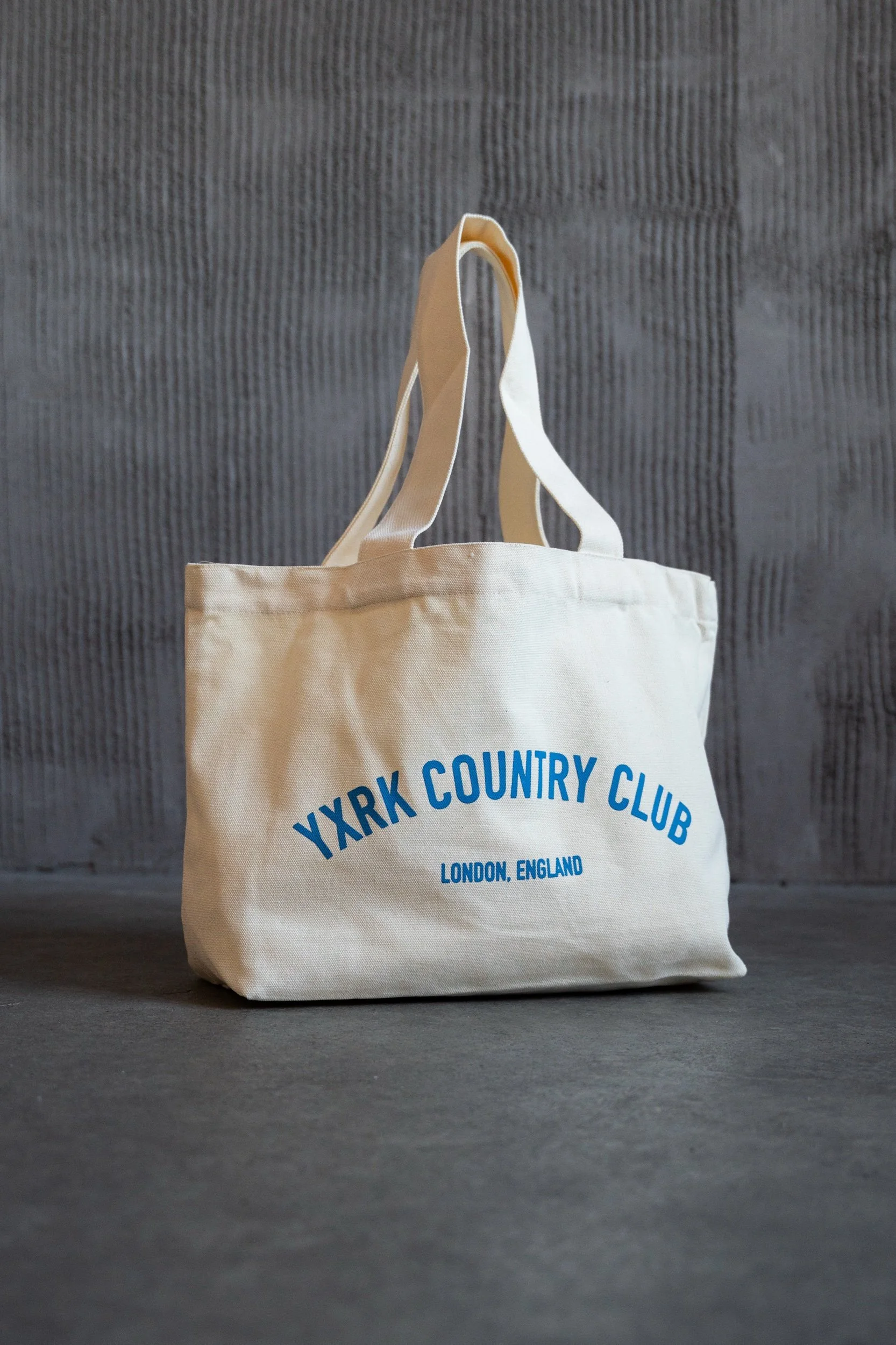 Our Premium Tote is an everyday essential, perfect for the court. Using heavy duty material with a magnetic button fasten and a large pocket for extra storage, finished with screen printing of the staple yxrk country club London, England artwork